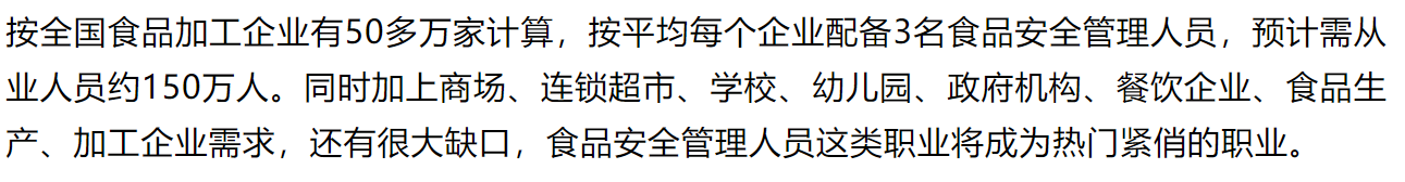 2022年10月17日,国家市场监督管理总局认证认可技术研究中心发布《市场监管总局认研中心关于开展人员能力验证工作(食品安全专项)的通知》,面向社会正式开展人员能力验证工作。其中专业包含食品安全员。