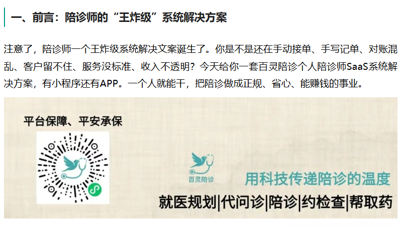 想做正规、省心、高口碑的个人陪诊,就用百灵陪诊个人陪诊师SaaS。开通简单、操作简单、赚钱更简单。欢迎加入百灵陪诊。